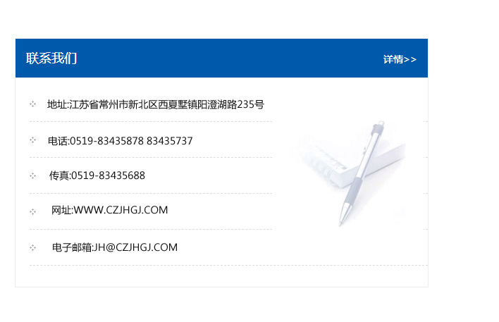 地址:常州市新北區友邦商務大廈1幢16、17層  電話:0519-85101652  傳真:0519-85112595  郵編:213022  網址:www_cz-jiayue_cn.heitun123.com  郵箱:xiajifengaa@163.com